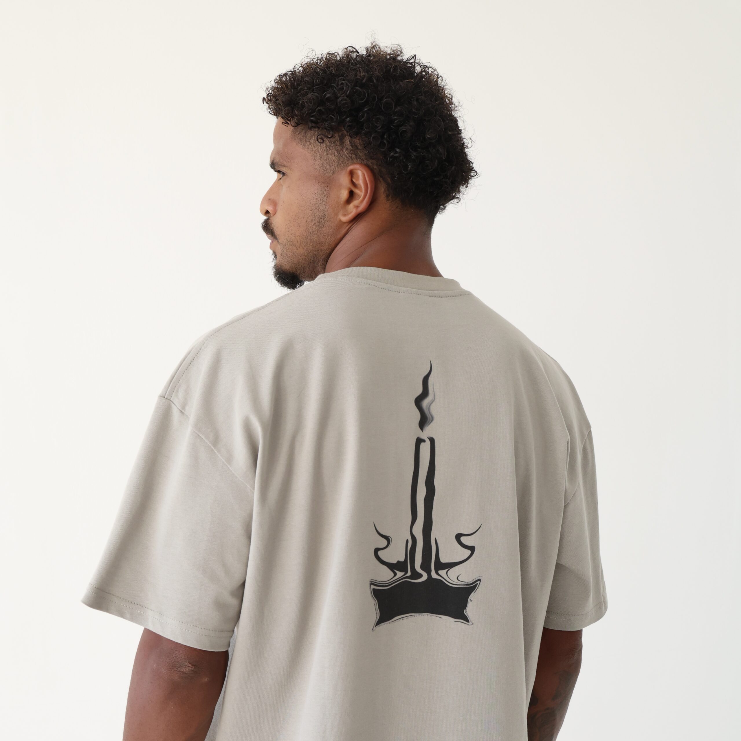 Printed candle design on the back, embroidered brand name on the front in matching black tones.